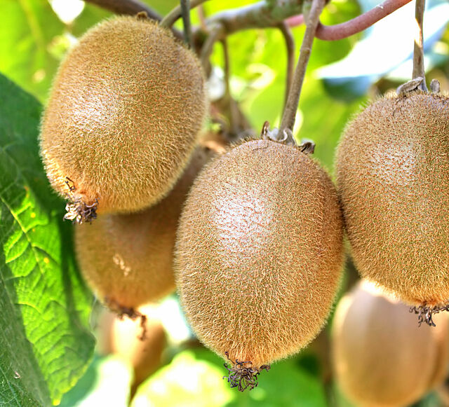 Kiwifruit, kiwi or Chinese gooseberry are all names that refer to the edible berries of various species of woody vines that belong to the genus Actinidia. The so-called golden kiwifruit or Actinidia chinensis has a soft and bronze colored skin. The color of its flesh varies from a bright green to an intense yellow color. This particular kind tastes sweeter and has a more aromatic flavor, reminiscent of subtropical fruit varieties.