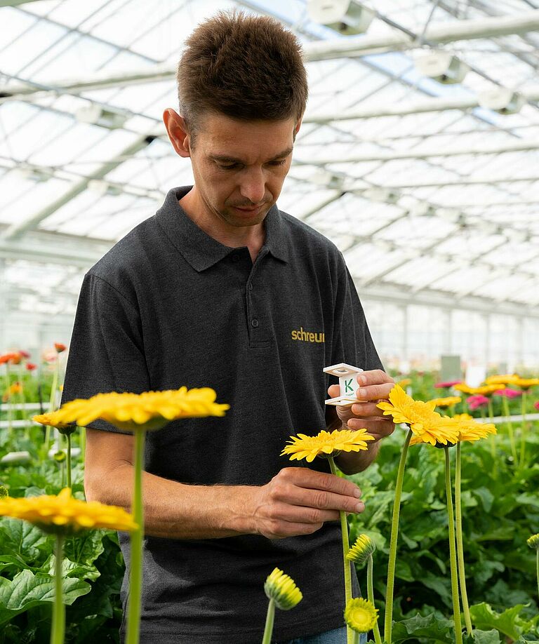 Henri Volgering, Scout at Schreurs, explains: “Scouting is very important within this cultivation. This is why we not only conduct a weekly count of all sticky traps but also engage everyone working in the greenhouse to remain alert for pests such as the Onion thrips (Thrips tabaci), Greenhouse whitefly (Trialeurodes vaporariorum) and Southern European marshland pyralid (Duponchelia fovealis). We aim to be proactive should intervention be required."