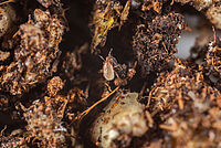 Eggs, larvae and pupae of sciarid flies; thrips pupae.