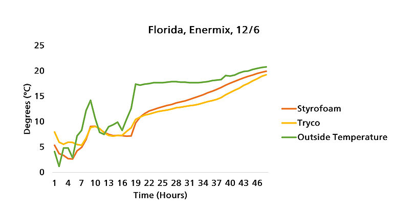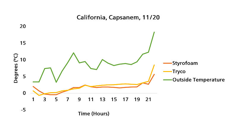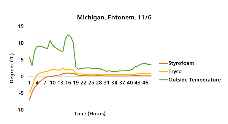 Our numerous trials from November to December have shown that the Tryco boxes worked just as well as the Styrofoam boxes. In some cases, they outperformed the Styrofoam packaging in maintaining the required temperature for transportation. We conducted our trials by shipping both types of packaging to clients located in some of our country’s warmest climates. For the most part, we chose locations with the greatest distance from our Howell, Michigan location. These locations included California, Florida, Michigan, and Georgia.