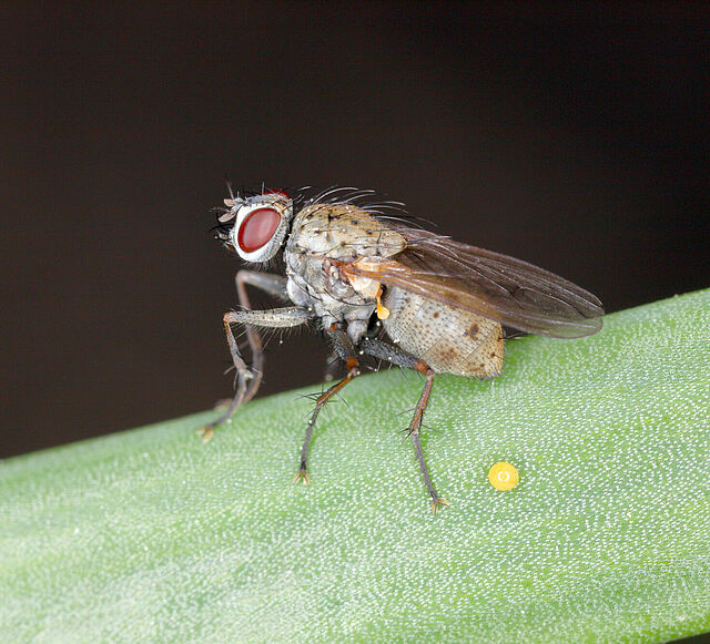 Flies can cause damage to crops both directly and indirectly. The type of damage depends on the species of the flies. Direct damage is the immediate result of larvae feeding on root hairs and tender roots as well as stem and leaf tissue and fruits. The lesions caused by feeding larvae provide invasion routes for various pathogenic fungi, for instance Fusarium sp. And Botrytis sp. Adults can also spread pathogens from diseased to healthy plants. Frass deposited on leaves or flowers in ornamental crops, lettuce, and herbs also causes cosmetic damage, and sometimes this can occur on such a scale that growth, particularly of young cuttings, can be retarded.